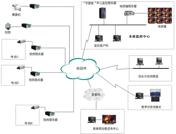 隨著科技的進步和經濟的發展帶來了整個社會生活水平的提高,校園的教學方式也發生了很大的變化,傳統的手把手式教學已漸漸退出舞臺,取而代之的是素質教學、室外教學、多媒體教學等方式;同時由于校園考試違紀作弊的行為越來越隱蔽化、作弊手段越來越技術化等現狀,為了確保在每間教室作為考場時能減少人員的管理和保證考場在考試期間能有效的監考考生的情況,并且能在平時作為多媒體教室用,學校領導可通過系統對各班級的教學質量進行評估,建設一個多媒體閉路監控系統對整個學校的有關教室進行監控已勢在必行。國家教委有關文件已明確表明,各省市地區擬定陸續在轄區內各大中小學校統一建立校園監控系統。